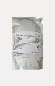 This is quite the show-stopper of our present condiment range – it’s a testament of time, persistence and balance. Single clove garlic fermented till it releases its natural sweetness and flavour melded with the piquant Ishka Capers and Caper Salt. This eggless ‘aioli’ shines in multiple places – cheeseboards, sandwiches, alongside a bowl of fries, as a base for a dip or dressing or even simply smeared on toasted bread to make an uplifted version of garlic bread!