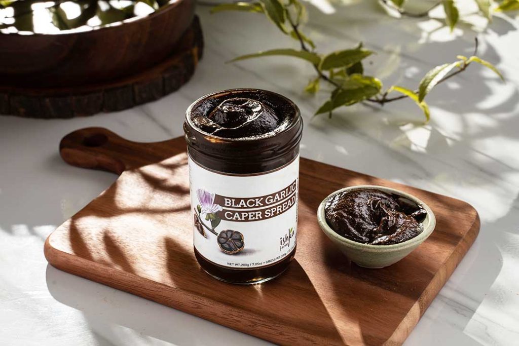 - Ishka Farms Black Garlic Caper Spread 3 tbsp