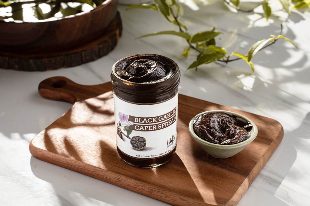 - Ishka Farms Black Garlic Caper Spread 2 tbsp