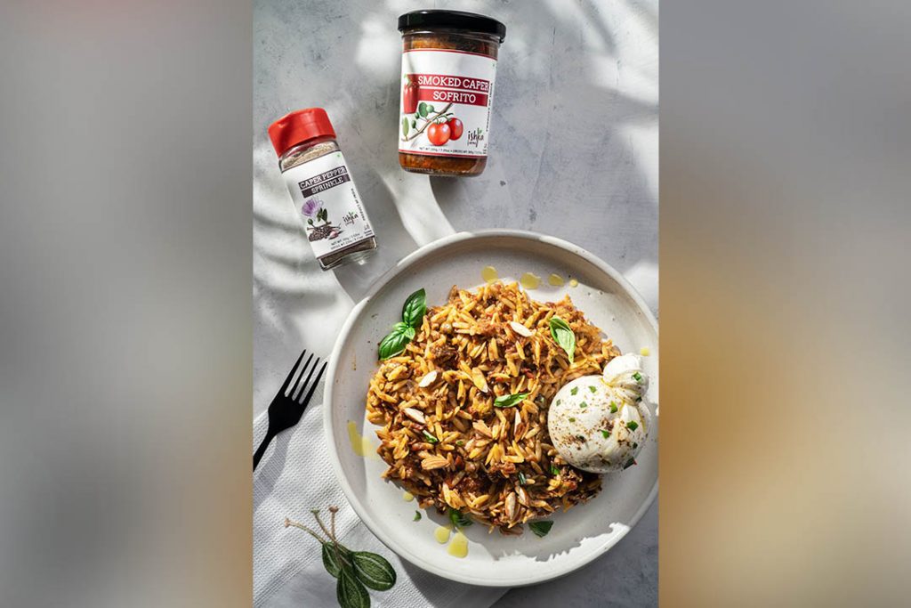 Orzo With Ishka Smoked Caper Sofrito & Baby Burratina