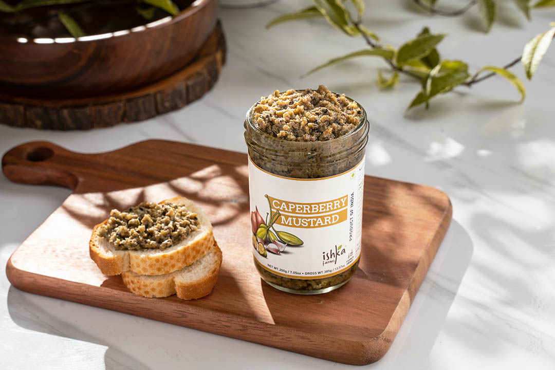 Yes !! This rendition of the Ishka Caperberry celebrates the spectacular seeds in the berries, which resembles the texture of mustard seeds. The texture and saltiness of our caperberries are showcased in this condiment. As the name suggests, one can use it in everything one would traditionally use mustard in but amplified with the taste of Caperberries. It makes for a perfect swap in vinaigrettes, glazes, mayonnaise-based sauces and a start to build a great sandwich.
